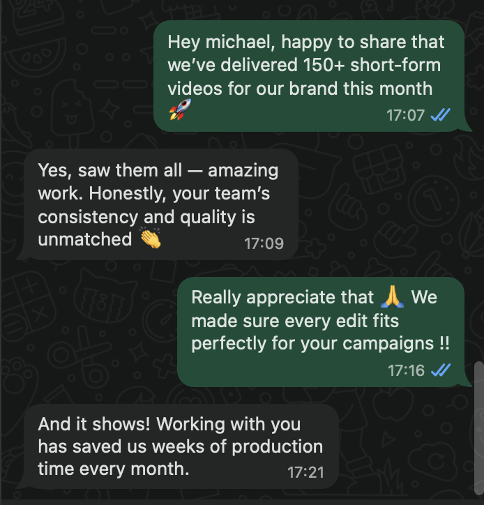 We use advanced project management systems combined with our team of 10+ professional editors to deliver consistent, high-quality videos at scale seamlessly.